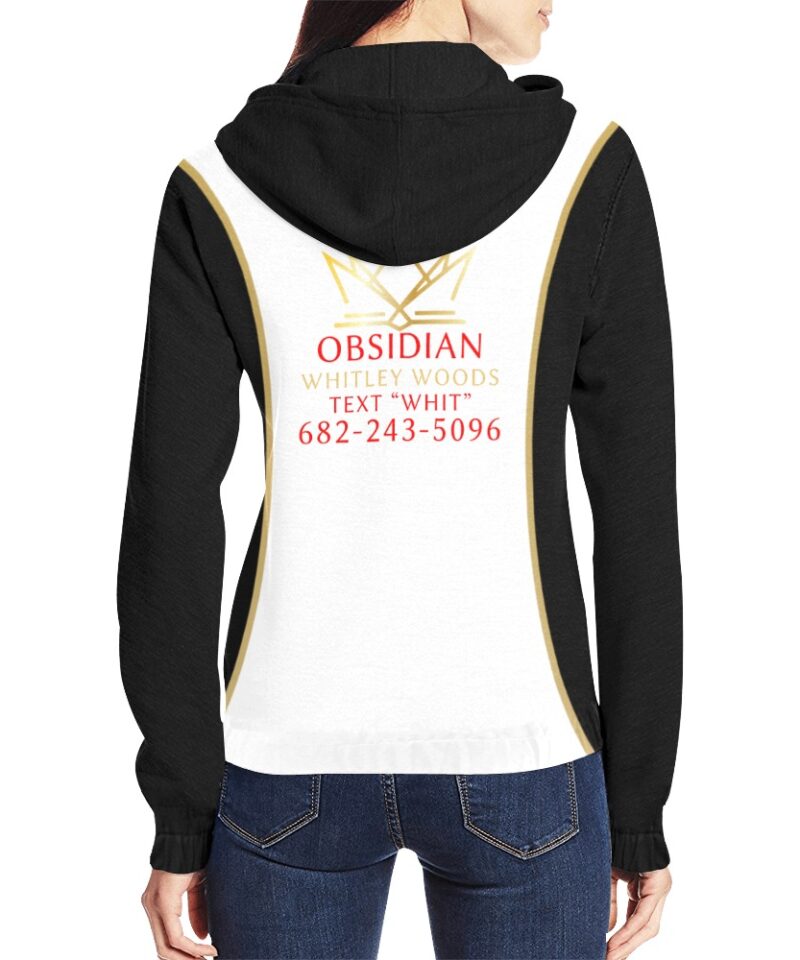 Obsidian Jacket black whit All Over Print Full Zip Hoodie for Women (Model H14)