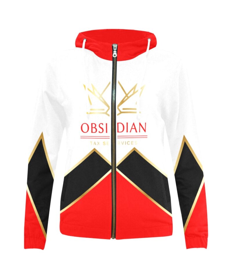 Obsidian Jacket white 2 All Over Print Full Zip Hoodie for Women (Model H14)